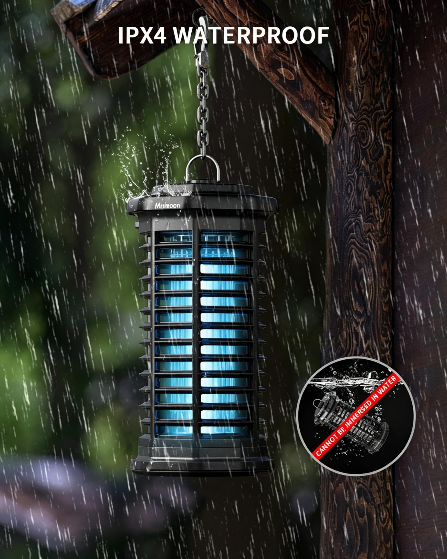 Minimoon Bug Zapper Outdoor 4000V Powerful Electric Mosquito Zapper, 15w Fly Trap Outdoor, IPX4, Corded Fly Zapper for Indoor,